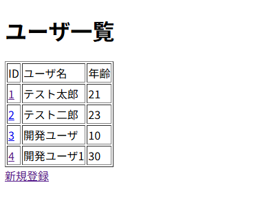 </body>一覧のidにリンクを追加します。リンクは「/test/detail/1」のような形で最後にidを設定します。